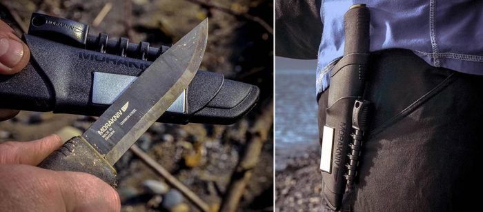 Что же касается непосредственно ножа, то сделан Bushcraft Survival Black был в Швеции. Длина ножа составляет 232 мм из которых 109 мм – лезвие. Весит нож 154 грамма. Легкий и практичный, его клинок сделан из высококачественной стали и покрыт антикоррозийным составом для большей защищенности. Нож легко чиститься и не требуют особого ухода в походных условиях.